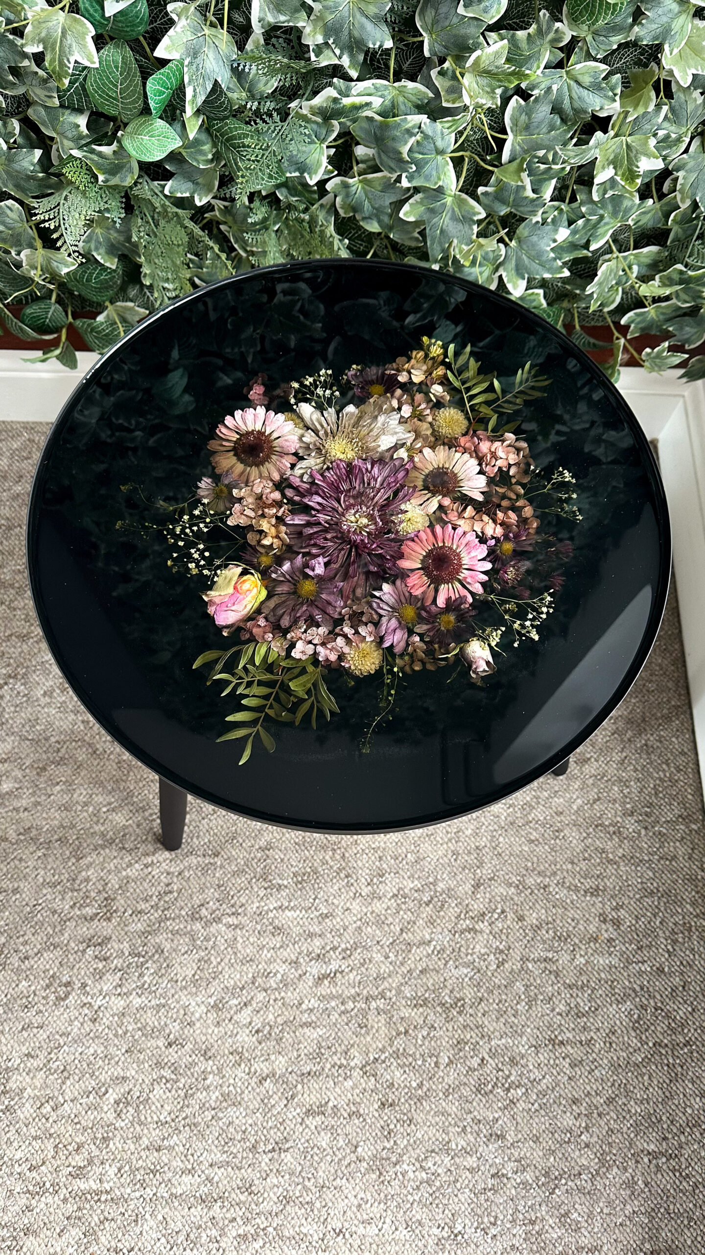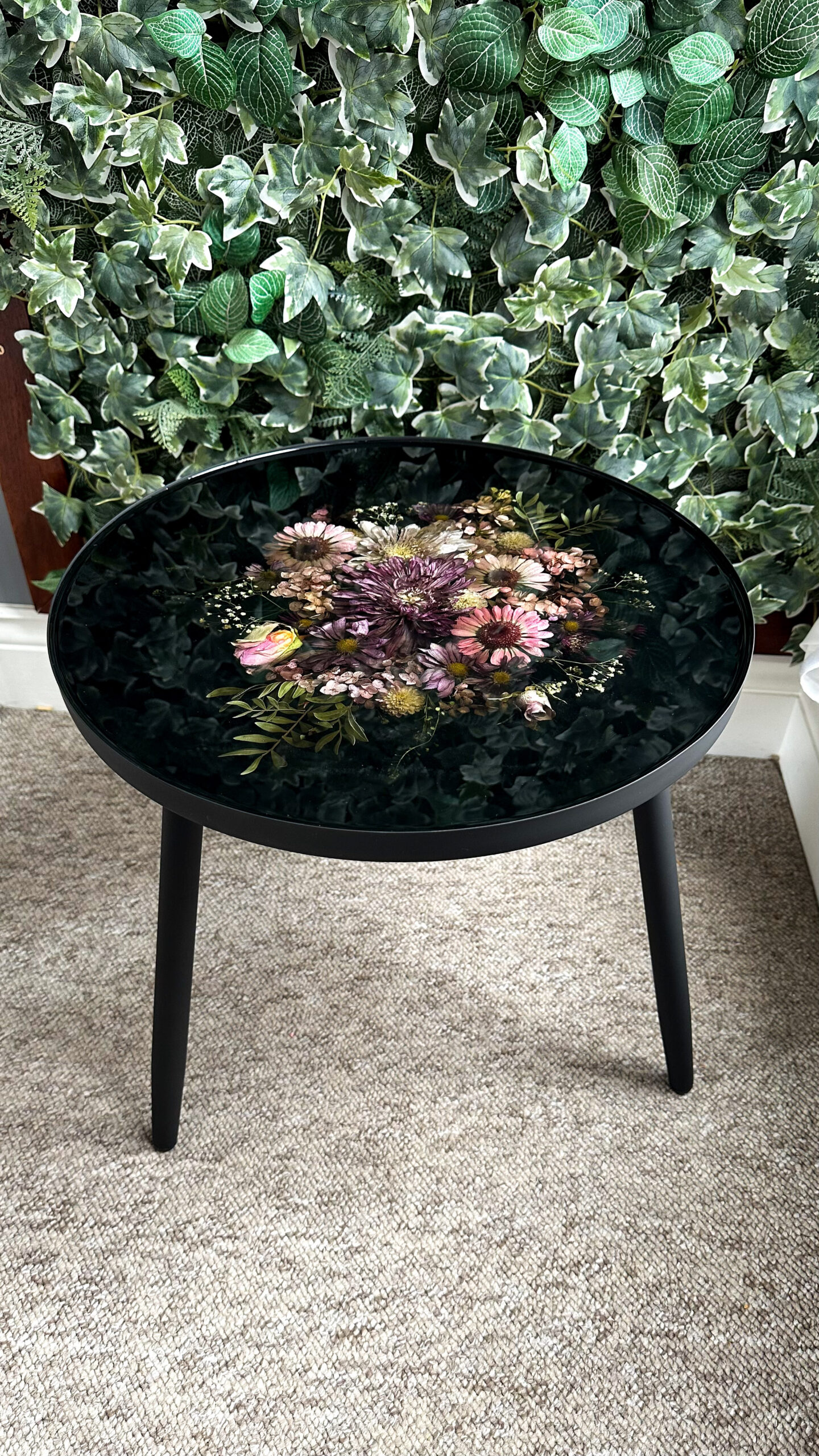 Elevate your living space with this stunning handcrafted side table, made from high-quality epoxy resin and dried flowers inside.