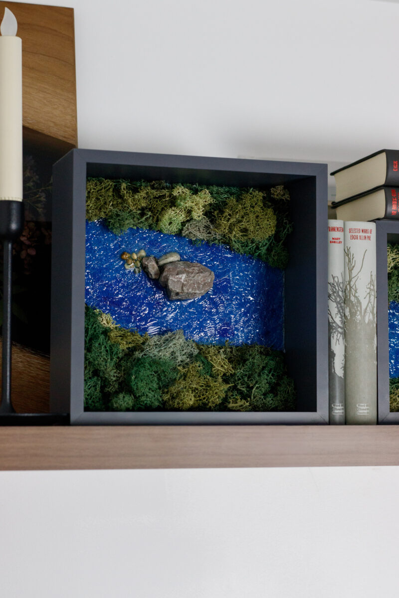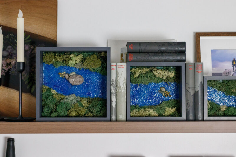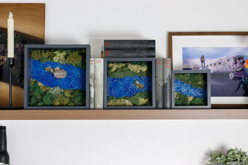 Decorate your wall or shelf with beautiful preserved moss and blue epoxy resin river wall decor.