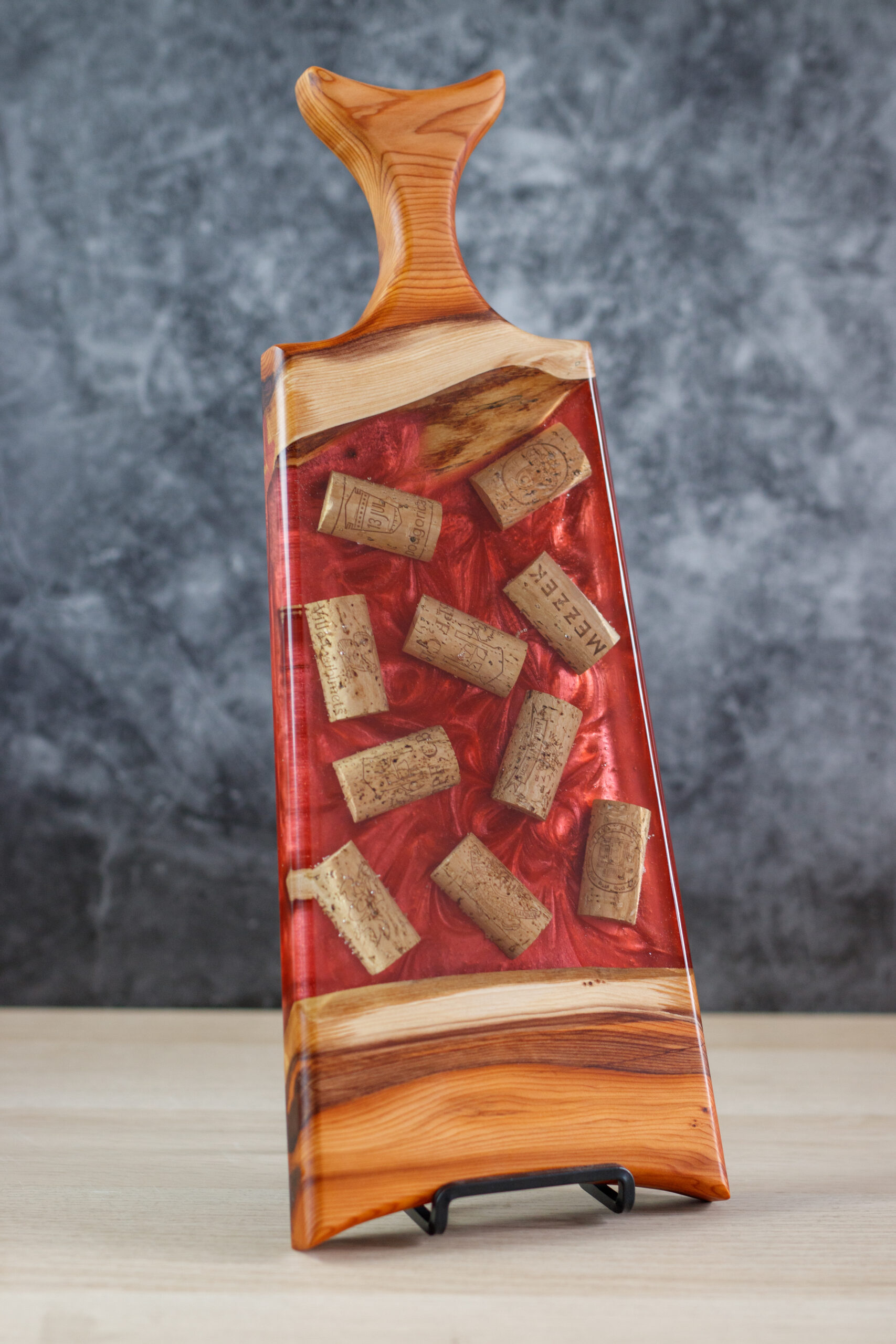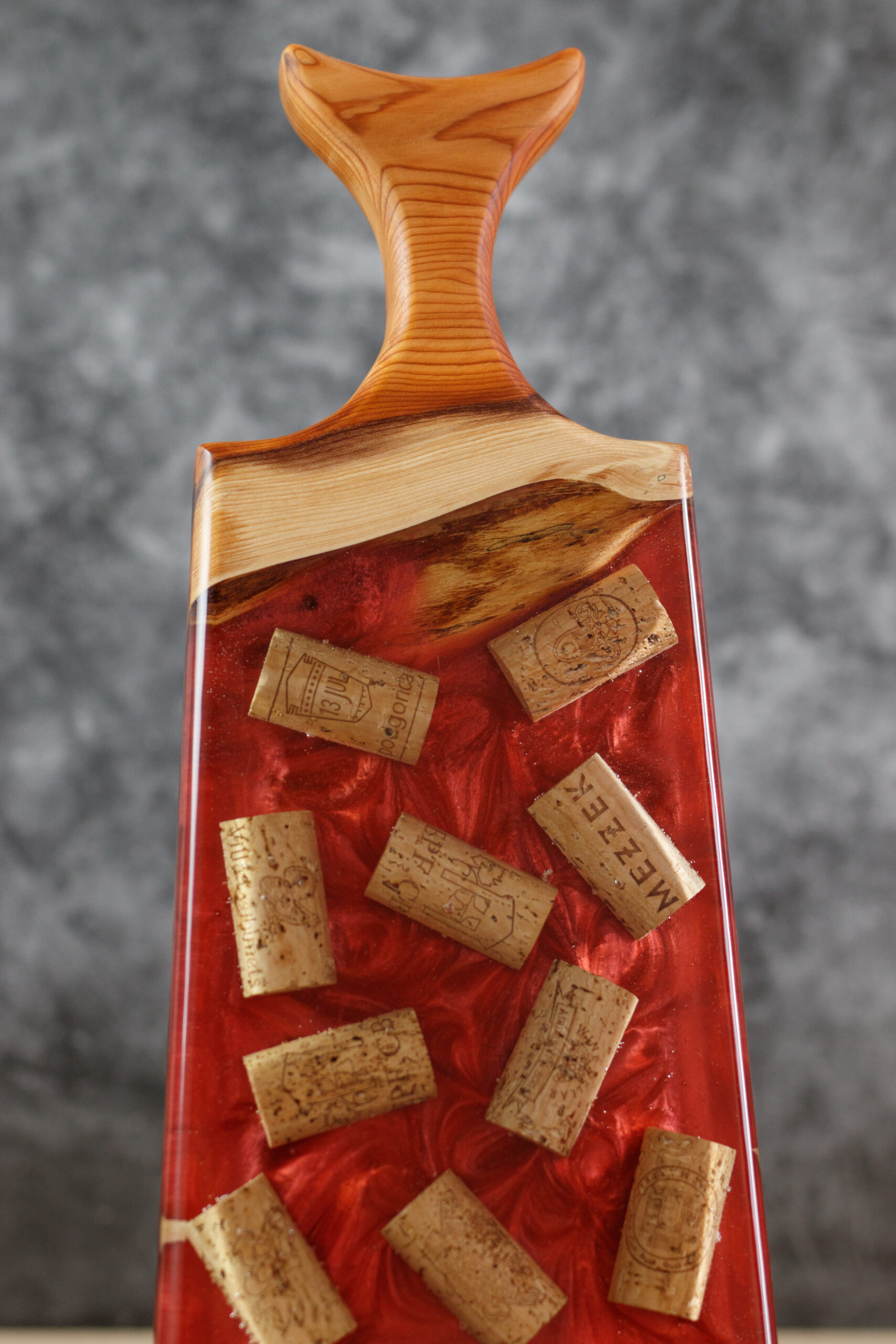 - Materials: Yew Wood, Epoxy Resin, Wine Corks