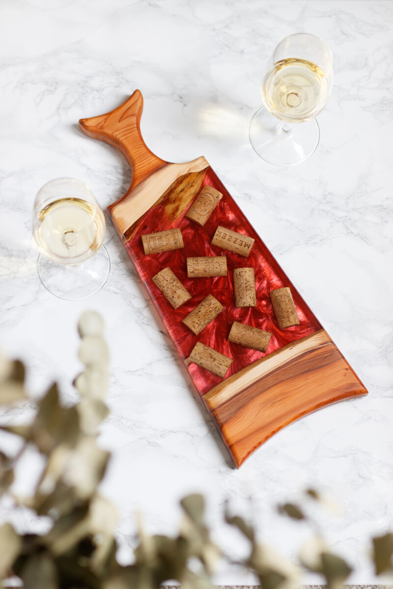 Wine cork resin charcuterie board not only decorative but also fully functional.Details